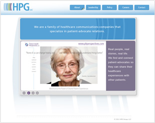 HPG, a family of healthcare communications companies that specialize in patient-advocate relations, asked us to design and write the content for all three of their company websites. Each has a unique mission and style, yet promotes the same over arching emphasis on the patient experience.